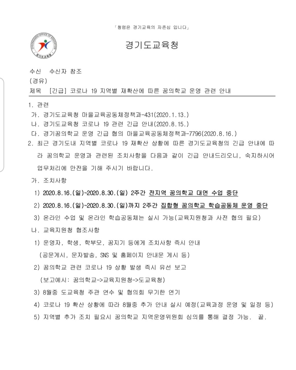 코로나19 지역별 재확산에 따른 꿈의학교 운영관련 안내 페이지 정보 작성자 관리자 댓글 0건 조회 775회 작성일 20-08-18 15:04 본문 목록 이전글2020년~2021년 (사)오연문화예술원 사업 및 활동 22.04.14 다음글2020년 (사)오연문화예술원 하계 워크샵 (진도북춤 완판 8월15일~16일) 20.07.24 댓글목록 댓글목록 등록된 댓글이 없습니다.