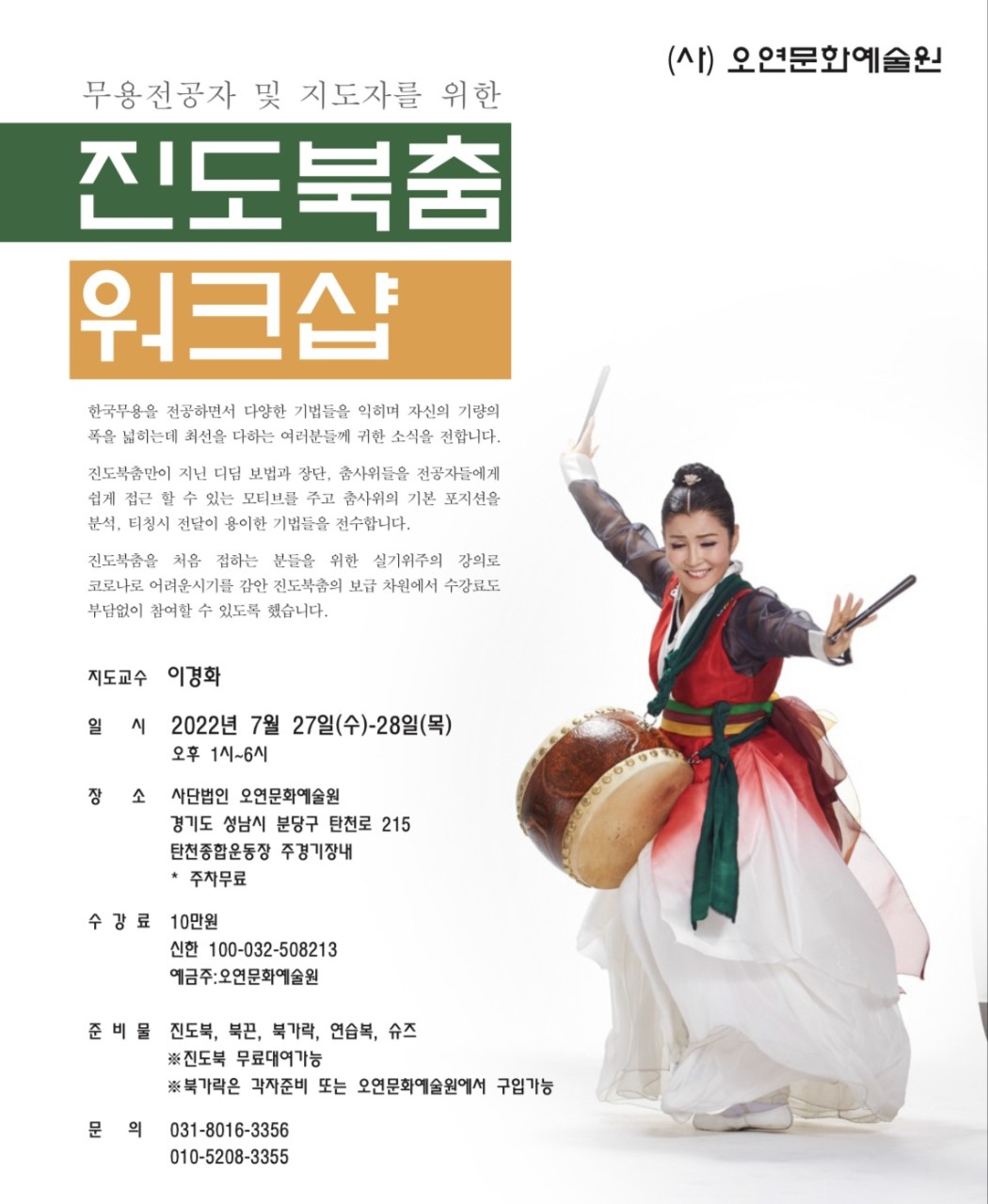 2022년 무용전공자 및 지도자를 위한 진도북춤 워크샵<7월 27일(수)~28일(목)>